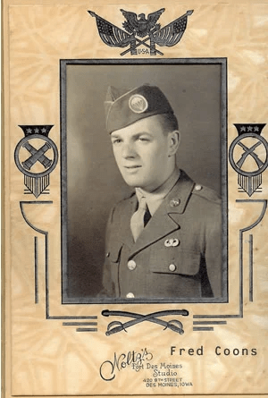 Art writes: Fred and his older brother Chuck and I were best of friends. Chuck was in the tank destroyer unit. Their younger brother was Merle Coons and he enlisted in the Marines, then the youngest brother was Babe Coons who was Robert’s friend. They had a older sister too.![]()
