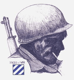 This Sketch was drawn by Dick Merrill, who served with the 7th Division in Korea. When I first saw it, I saw in that face, the faces of at least 100 men with whom I had served in WWII. I was so moved by it that I begged for a copy and immediately my mind went to work describing poetically what I was seeing and feeling.