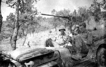 As Platoon Leader of the Intelligence and Reconnaissance (I & R) platoon, I was ordered to patrol to the northeast and report on road conditions, traffic and the fighting. At dusk, I left the 7th Infantry CP, which would soon be abandoned on the basis of my report on conditions ahead. Before we reached the first rise in the ground, my jeep was stopped by a line of traffic all trying to move eastward on the single, narrow, unpaved road to Artena. Field artillery, tanks, antitank guns, engineers, medics, wire men, and service company trucks carrying ammo, rations, water and gasoline were parked in a seemingly endless line at the side of the narrow, unpaved road. I was impressed with the training and discipline of the drivers. Although there was no traffic coming toward us, not one of the hundreds of eastbound drivers tried to move up by driving on the left side of the road. They all pulled over and turned off their ignition switches. We waited like everyone else.