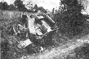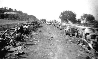 Next morning at daybreak, the column began to creep forward slowly, in fits and starts, as we climbed into the hills. The narrow, unpaved road, through the wooded hillside, was littered with dead Germans, dead horses, wagons and equipment of every description. (A German Infantry Division at that time had more horses than men. They were draft horses, not riding horses.) I vividly remember seeing my first German Mark VI Tiger tank up close. It was huge! The tracks seemed at least three feet wide and its fearsome 88mm gun, with its characteristic muzzle brake, seemed impossibly long. The tank appeared to have been abandoned at roadside because of mechanical failure or lack of fuel. Those were the only things that could stop the 72-ton Mark VI Tiger with its eight inches of armor plate! After another half mile, the column stopped again and the drivers dutifully pulled over, turned off their engines and settled in to wait.