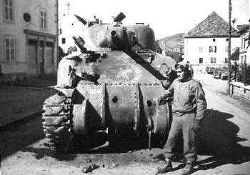 Beisheim finally fell to the 2nd Battalion on February 4 and some 500 German prisoners were taken. The rifle companies moved on toward Vogelsheim and Neuf-Brisach, the last two towns before the Rhine River bridge across which the Germans were escaping before blowing it up. The Regimental CP was moved forward to Beisheim. On the road between the two towns, which were about a mile apart, there stood a jeep with an American major and his driver, both dead and frozen stiff, sitting upright in their seats behind a bullet riddled windshield. The vehicle was not from our Regiment and I could only conclude that the major was lost and had driven through Kunheim during the night and run right into the Krauts. On a European vacation trip, long after the War, I visited Kunheim briefly during the same side trip to Ostheim. I looked for our old CP without success. The village had been completely restored and the two lane dirt road separating the CP from the building that I occupied, was now a wider paved road. Our location had been at the very edge of Kunheim, but Kunheim had now expanded for about a quarter mile into the farmland between it and Beisheim. I could find no familiar landmark. There was no memorial here as in Ostheim, but there was one on the outskirts of town. It was an American Sherman tank with all French markings sitting on a concrete base. There was a large plaque which credited the French 2nd Armored Division with the liberation and told of the intense fighting. There was no mention of American participation! I saw no French troops anywhere near that area when the fighting was going on. Just one more example of the politicians rewriting history.