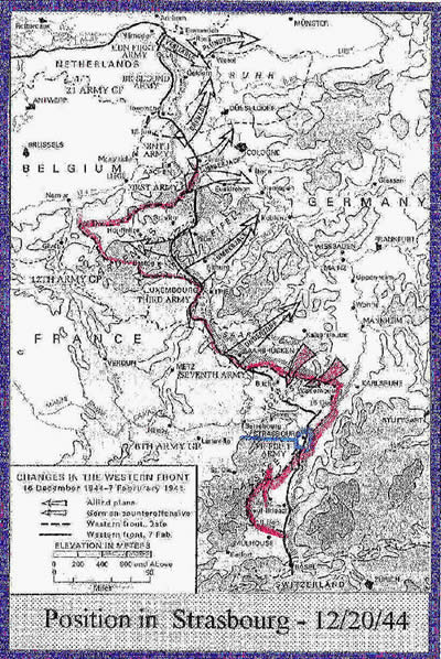 The French were having trouble containing the Colmar Pocket, let alone eliminating it. As the German offensive in the Ardennes faltered, and German Operation Nordwind began, the American Third Division was temporarily assigned to the First French Army to help them destroy the German bridgehead on the west bank of the Rhine. The plan was that the Third Division would punch a hole through the northern edge of the German bridgehead and then the 2nd French Armored Division would go through them to sweep south and cut off the German retreat across the Rhine bridge at Neuf-Brisach. What actually happened was that the Third Division did, in fact, punch a hole through the German line as ordered and the French armor poured through. But instead of heading southeast to cut off the Germans at Neuf-Brisach, they went southwest to occupy the city of Colmar. We never saw the French after the first day of the attack. When we had cleared the last German from the west bank of the Rhine, the French government awarded the entire Third Division the Croix de Guerre which authorized everyone in the Division, to wear the red and green fourragere over the left shoulder. Not to be outdone, the President of the United States awarded us a Division Distinguished Unit Citation, one of only four Divisional awards made during the entire War. The other three went to the 101st Airborne (Bastogne), the 4th Armored (relief of Bastogne) and the 1st Marine (Guadalcanal). I visited our old battle area many years later while on vacation in Europe. I saw several War Memorials to the gallantry of the French soldiers in liberating Alsace and never a mention of the Americans.