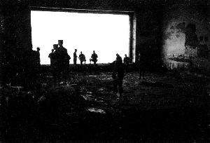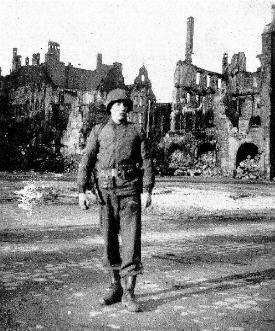 There was not a single building in the town of Ostheim left standing. The location I chose was not a building, but rather the largest pile of rubble in the area which still had an entrance to the cellar. Sgt. Anderson brought up some more men, set up a switchboard in the cellar and put men to work running lines to the Battalion CPs. I brought the rest of my platoon up and set up a defensive perimeter in the surrounding rubble. We were under heavy enemy shellfire and scattered small arms fire throughout this operation.